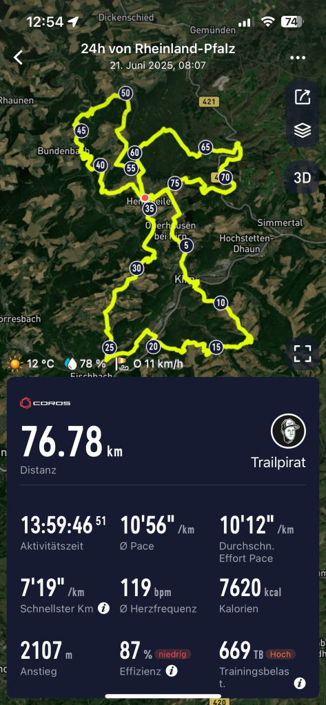 The 24h run of Rhineland-Palatinate showed me what’s possible with the right mindset, a solid plan, and good self-awareness. I’m proud of these 76 kilometers — not because I pushed through suffering, but because I ran with focus, joy, and respect for the conditions.